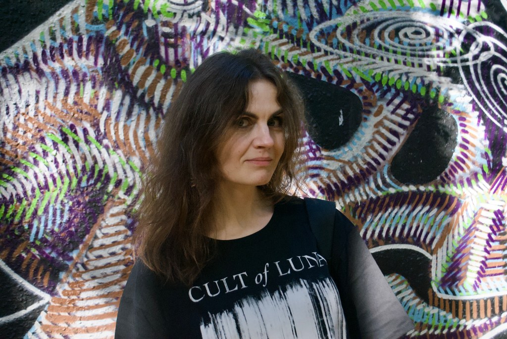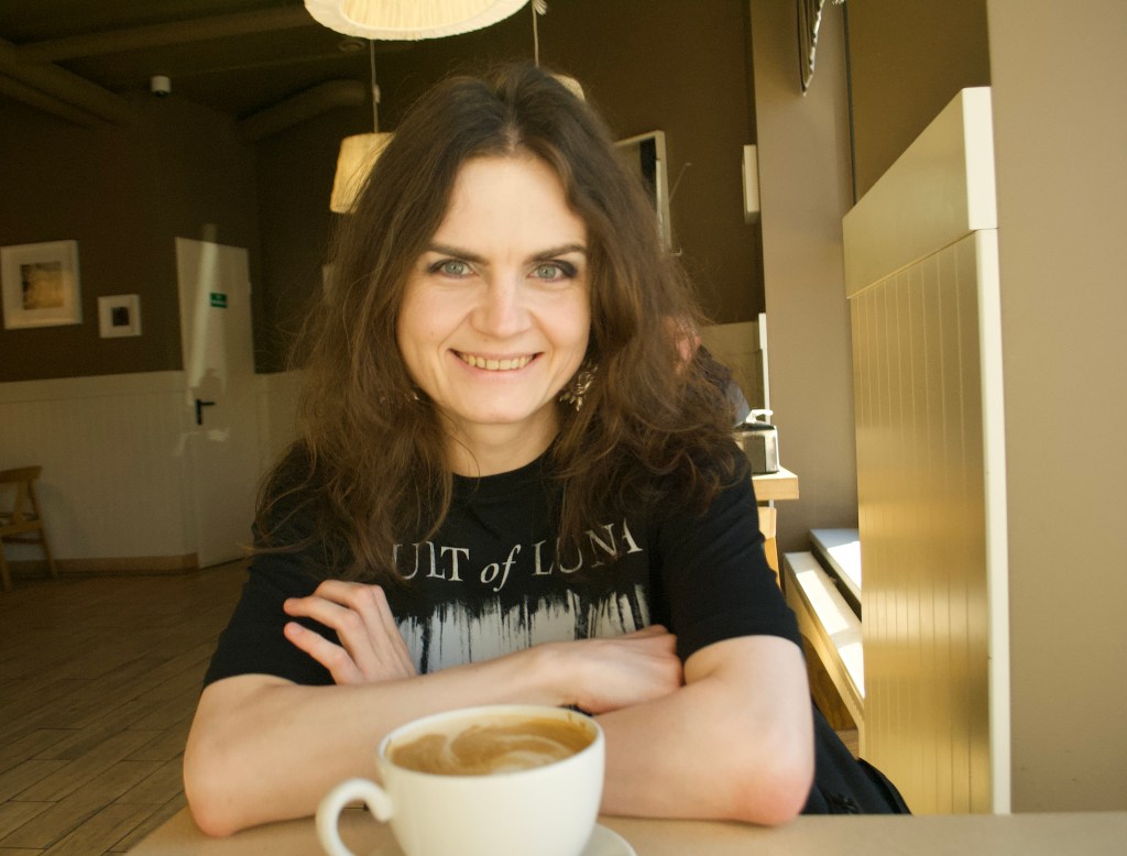 We meet in a cafe on a sunny September day. She’s wearing a baggy “Cult Of Luna” T-Shirt, smokey eyeshadows and earrings that represent the Sun. One might argue that this seems a little symbolical because “Svitlo” stands for “light” in the Slavic languages. Svitlana is smiling, ordering a cup of latte and like a true writer taking out her notebook and pen. We sit down to have our drinks, take pictures and talk.